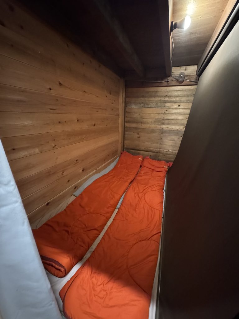 山小屋は思っていた以上に狭かったですが、この狭さも普段なかなかできない体験で面白かったです。