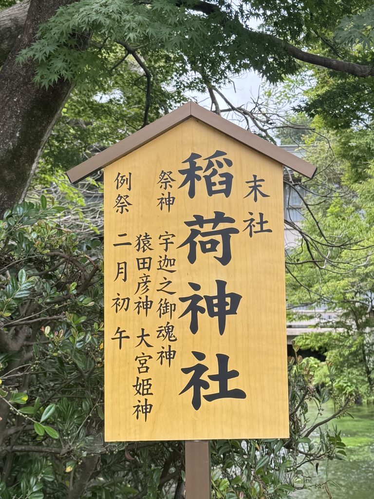稻荷神社の、社の手前右側にある「説明書き」です。