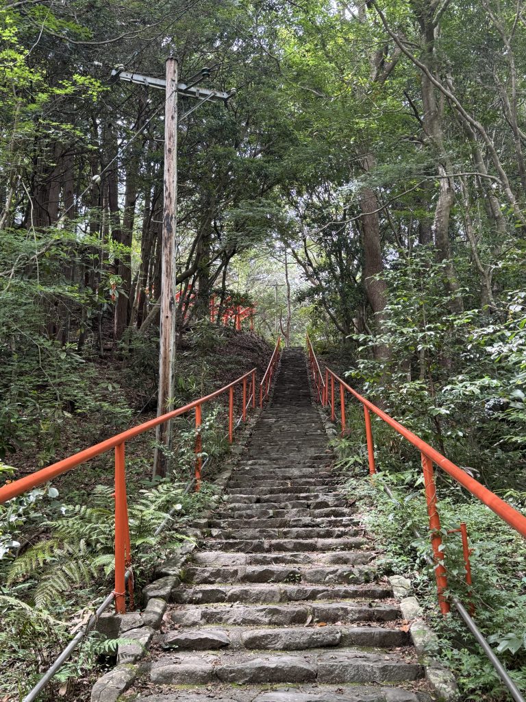 奥宮「峯神社」は、大麻山山頂(標高538m)に社があるため、参拝には登山が必要となる。