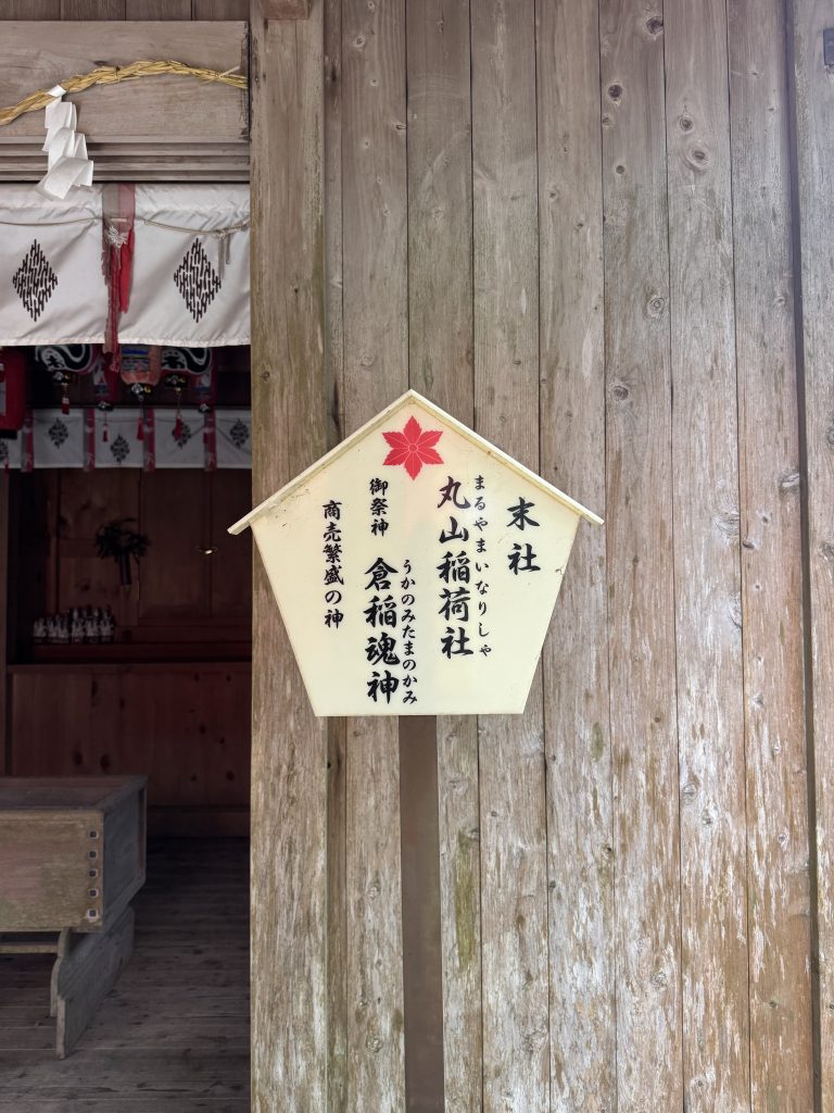「説明書き」には、丸山稲荷社の名称と御祭神が書いてあります。