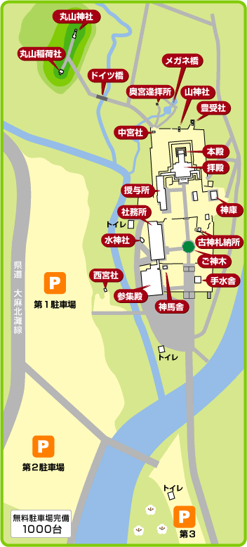 大鳥居を車でくぐると、その先に参拝者第1駐車場がありました。