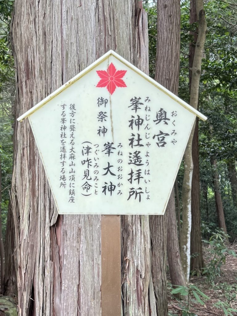 奥宮 峯神社遥拝所の、社の手前右側にある「説明書き」です。