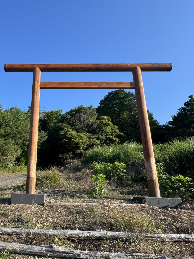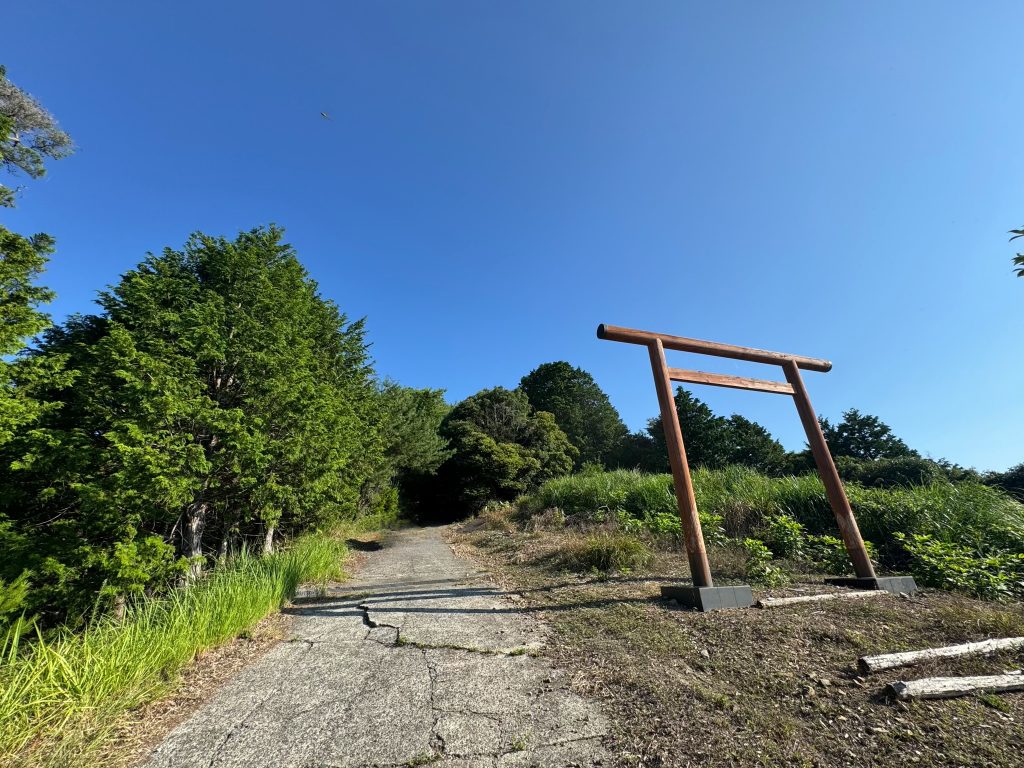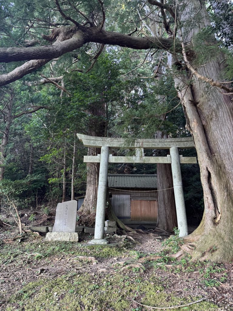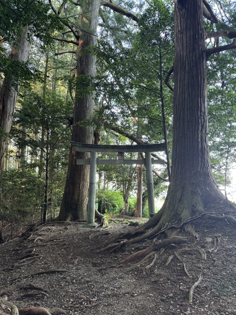 山の外の景色が見える場所から、道なりに5分ほど進むと、奥磐戸神社の「二の鳥居」があります。