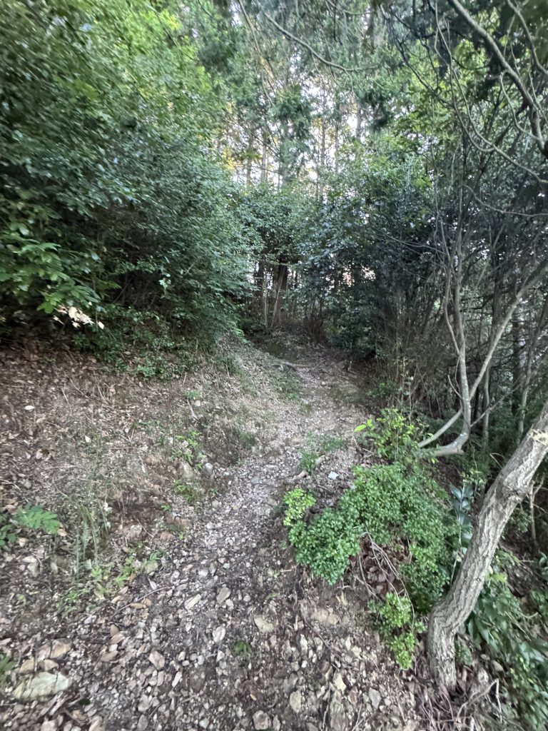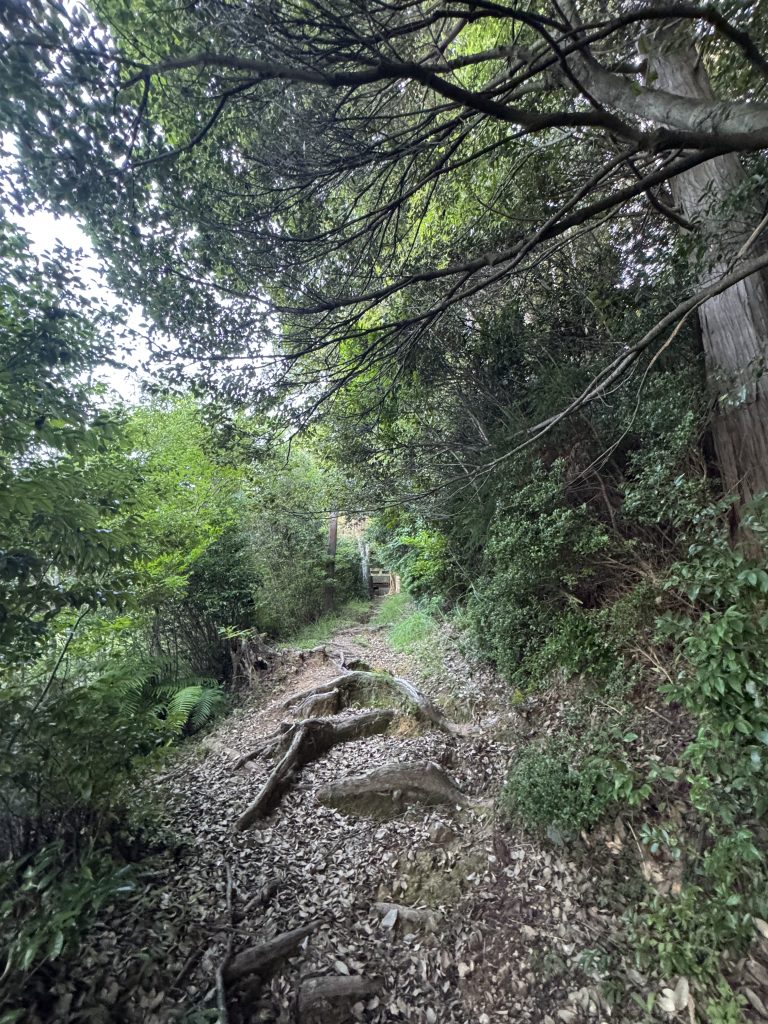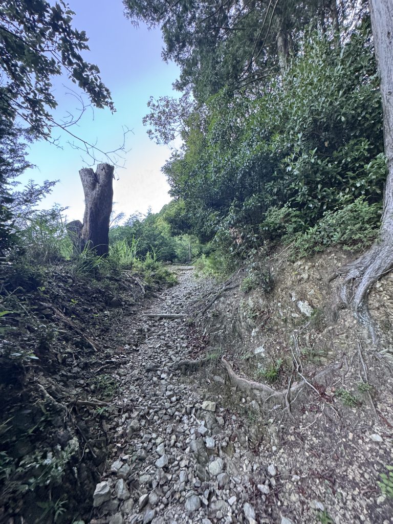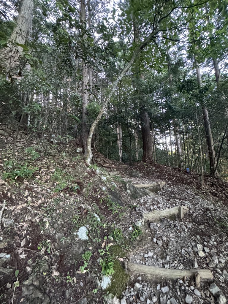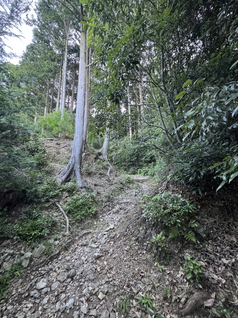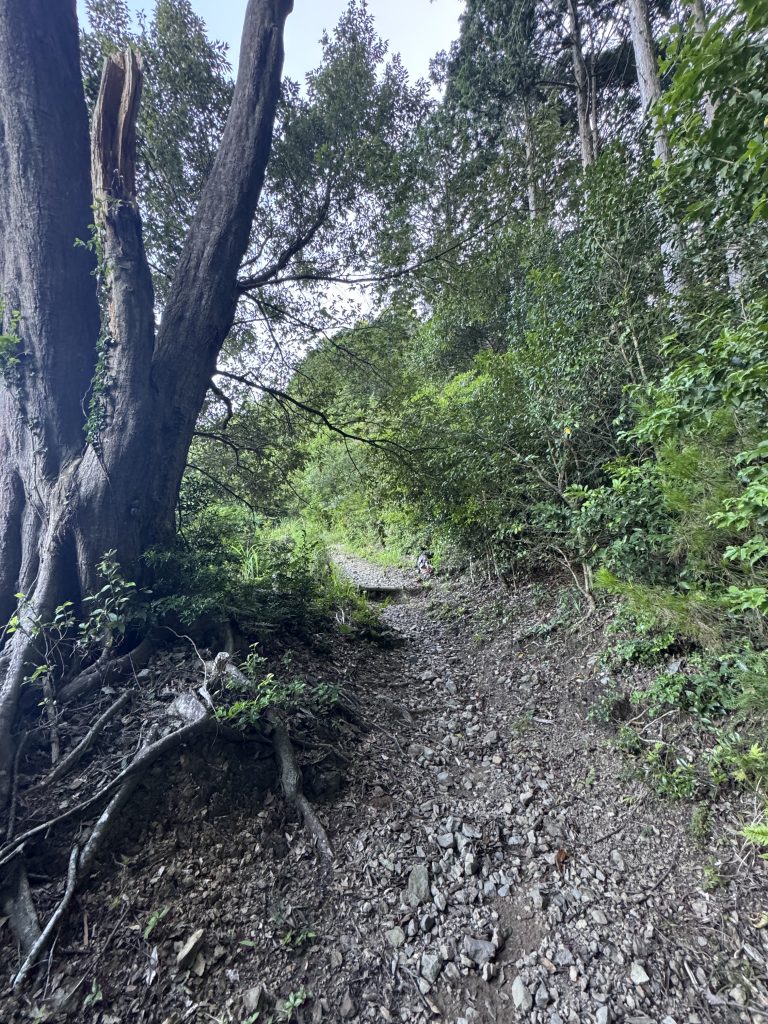 細かい石や枯れ葉が多い道なので、滑らないように気を付けてください。