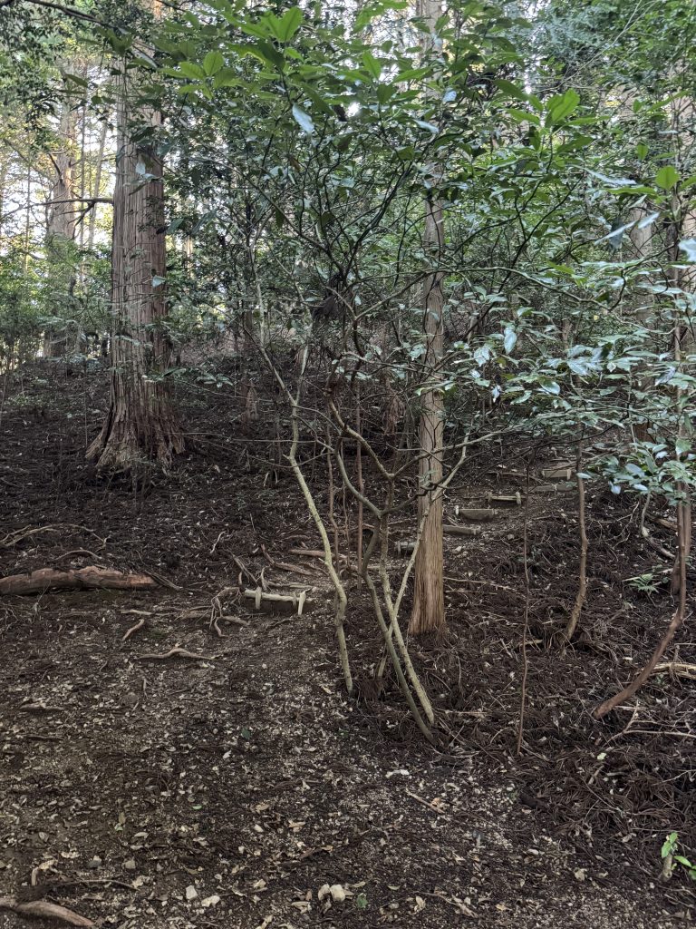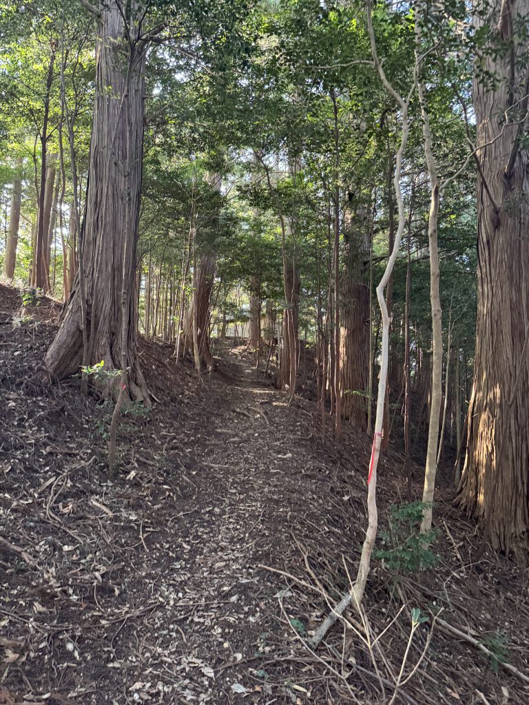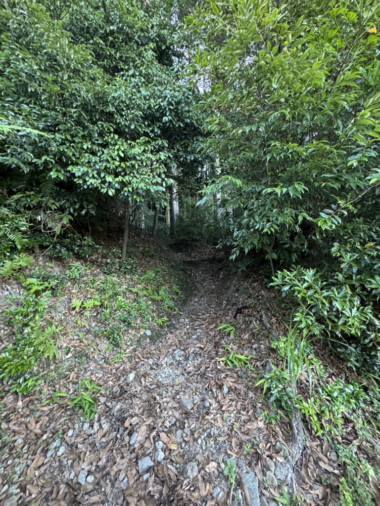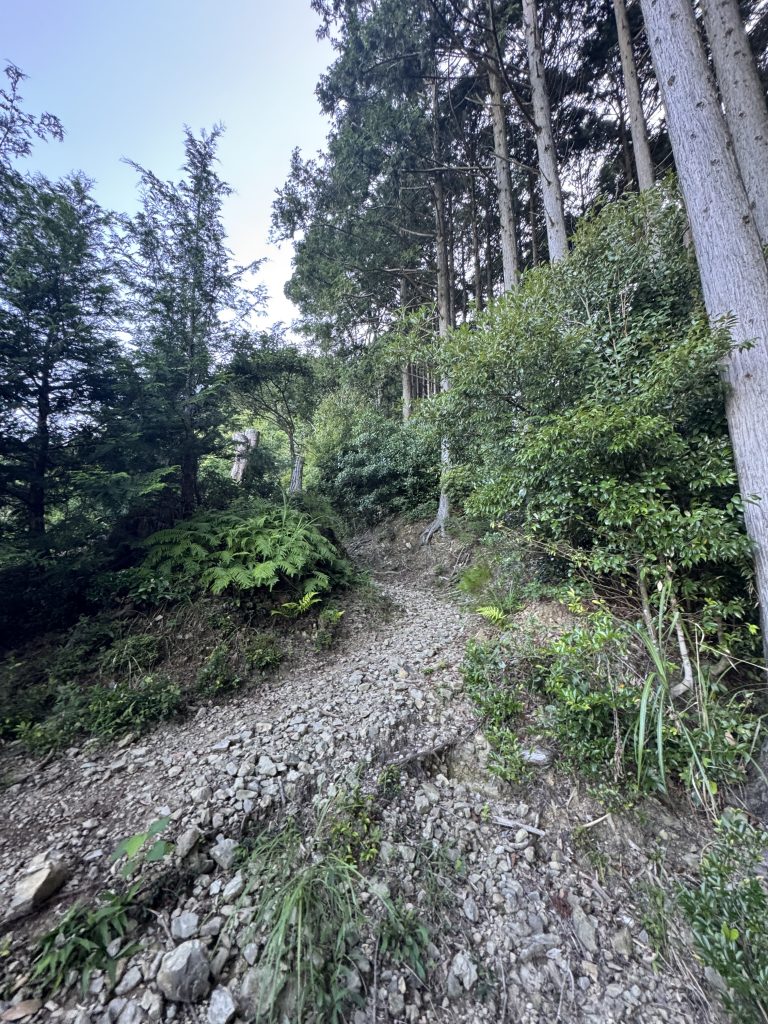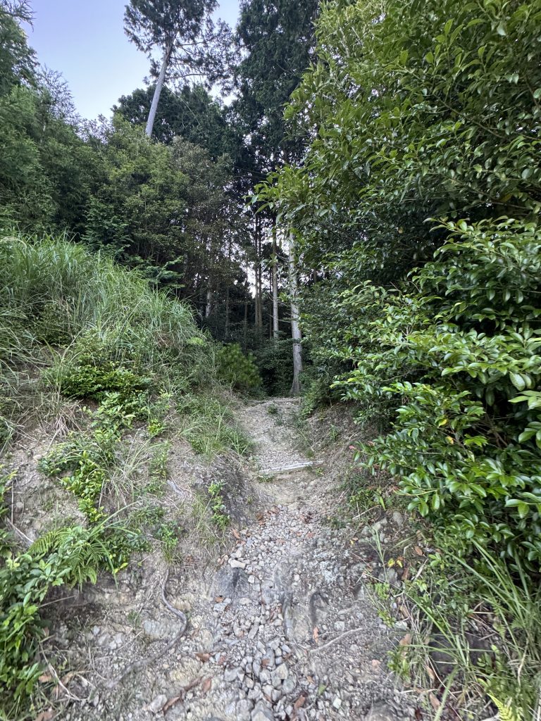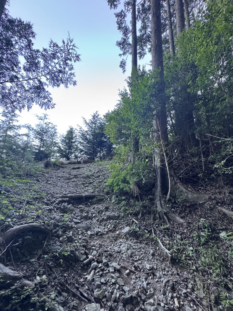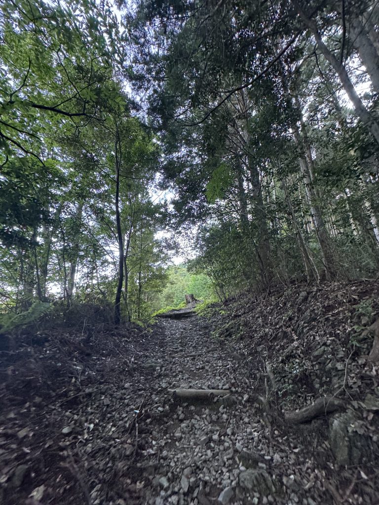 細かい石や枯れ葉が多い道なので、滑らないように気を付けてください。