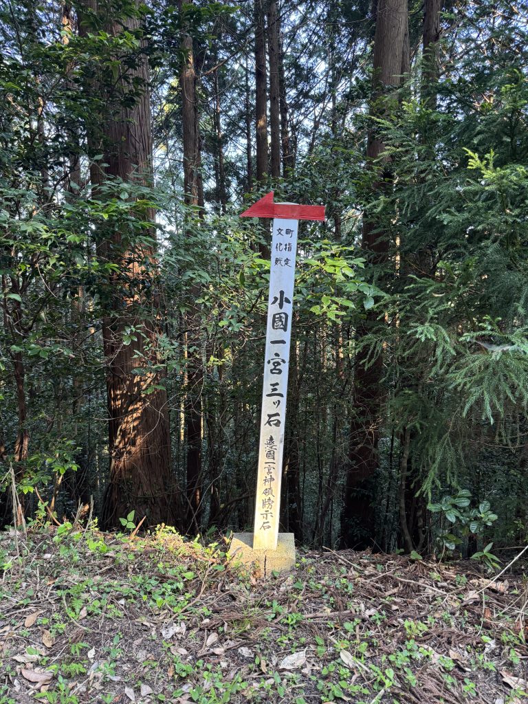 道標は、「小國一宮三ツ石」方面を示しています。