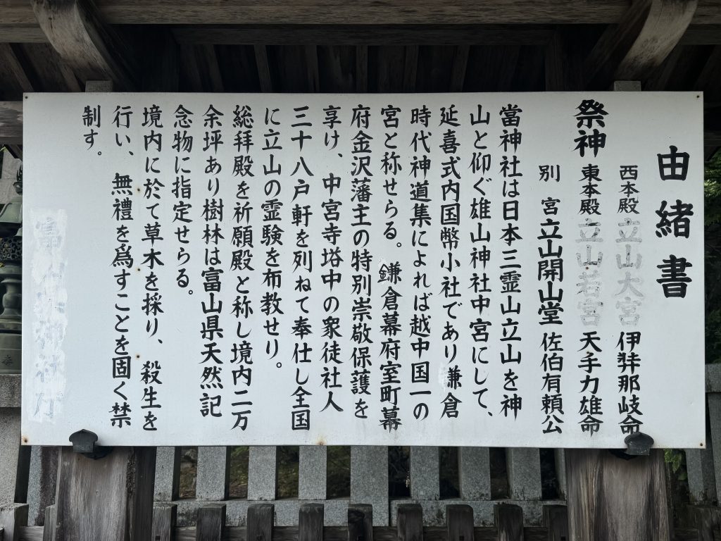 芦峅雄山神社境内杉林(左側文字部分拡大)