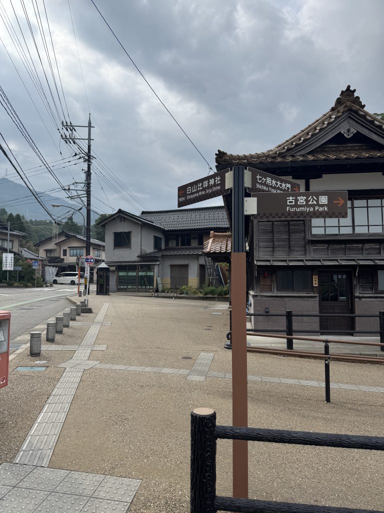 水戸明神みとみょうじん白山比咩しらやまひめ神社古宮ふるみや跡)は古宮ふるみや公園内にあるため、数台しか止められませんが、旧加賀かが一の宮駅・古宮ふるみや公園駐車場もあるのでこちらに駐車するのも良いかと思います。
